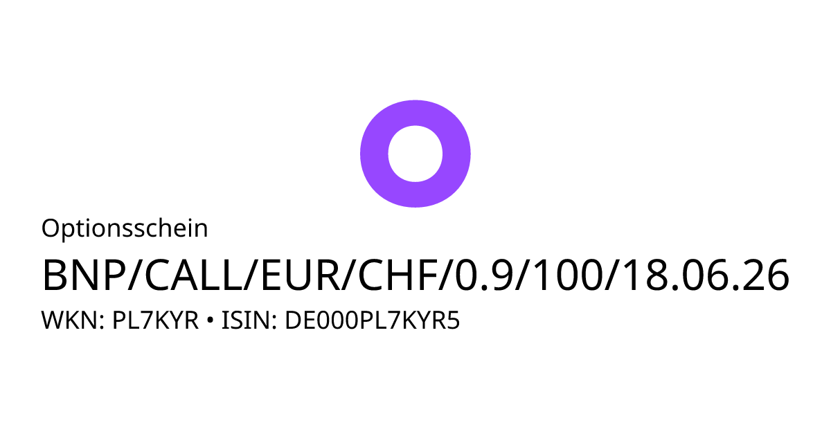 Dieser Optionsschein (Call) bezieht sich auf den Basiswert EUR/CHF und hat den Fälligkeitstag am 24.06.2026. Es handelt sich um ein Hebelprodukt, d.h. der Anleger partizipiert überproportional an der positiven und negativen Entwicklung des Basiswertes. Steht der Kurs des Basiswertes am Ende der Laufzeit über dem Basispreis von 0,90 CHF, berechnet sich die Rückzahlung durch die Differenz zwischen dem Kurs des Basiswertes und dem Basispreis bereinigt um das Bezugsverhältnis von 100,00. Andernfalls verfällt das Produkt wertlos.