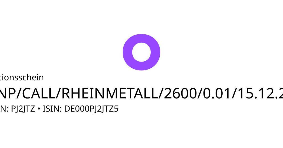 Dieser Optionsschein (Call) bezieht sich auf den Basiswert Rheinmetall AG und hat den Fälligkeitstag am 21.12.2028. Es handelt sich um ein Hebelprodukt, d.h. der Anleger partizipiert überproportional an der positiven und negativen Entwicklung des Basiswertes. Der Anleger hat während der Laufzeit ein Ausübungsrecht. Bei Ausübung berechnet sich die Rückzahlung durch die Differenz zwischen dem Kurs des Basiswertes und dem Basispreis bereinigt um das Bezugsverhältnis von 0,01. Am Ende der Laufzeit kommt es zu einer automatischen Ausübung. Liegt der Kurs des Basiswertes dann unterhalb des Basispreises, verfällt das Produkt wertlos.