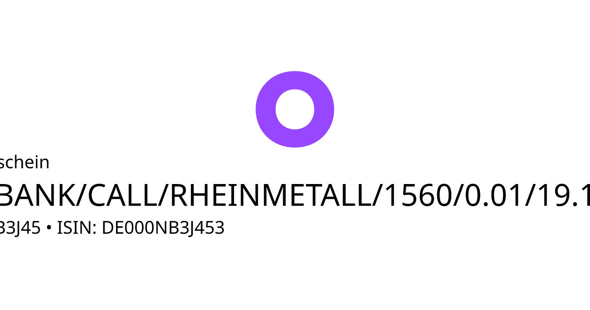 Dieser Optionsschein (Call) bezieht sich auf den Basiswert Rheinmetall AG und hat den Fälligkeitstag am 02.01.2026. Es handelt sich um ein Hebelprodukt, d.h. der Anleger partizipiert überproportional an der positiven und negativen Entwicklung des Basiswertes. Steht der Kurs des Basiswertes am Ende der Laufzeit über dem Basispreis von 1.560,00 EUR, berechnet sich die Rückzahlung durch die Differenz zwischen dem Kurs des Basiswertes und dem Basispreis bereinigt um das Bezugsverhältnis von 0,01. Andernfalls verfällt das Produkt wertlos.
