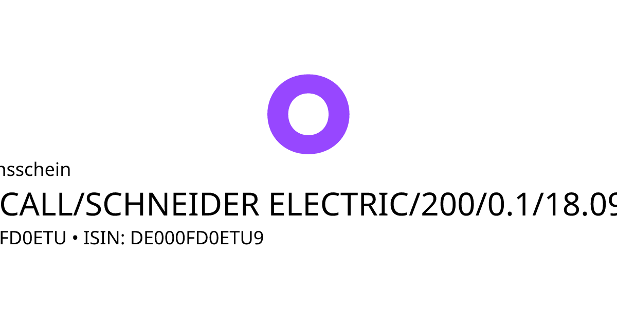 Dieser Optionsschein (Call) bezieht sich auf den Basiswert Schneider Electric SE und hat den Fälligkeitstag am 25.09.2026. Es handelt sich um ein Hebelprodukt, d.h. der Anleger partizipiert überproportional an der positiven und negativen Entwicklung des Basiswertes. Der Anleger hat während der Laufzeit ein Ausübungsrecht. Bei Ausübung berechnet sich die Rückzahlung durch die Differenz zwischen dem Kurs des Basiswertes und dem Basispreis bereinigt um das Bezugsverhältnis von 0,10. Am Ende der Laufzeit kommt es zu einer automatischen Ausübung. Liegt der Kurs des Basiswertes dann unterhalb des Basispreises, verfällt das Produkt wertlos.