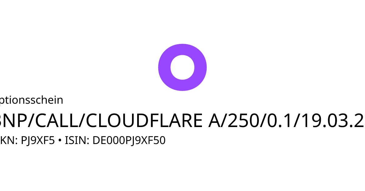Dieser Optionsschein (Call) bezieht sich auf den Basiswert Cloudflare Inc. und hat den Fälligkeitstag am 25.03.2027. Es handelt sich um ein Hebelprodukt, d.h. der Anleger partizipiert überproportional an der positiven und negativen Entwicklung des Basiswertes. Der Anleger hat während der Laufzeit ein Ausübungsrecht. Bei Ausübung berechnet sich die Rückzahlung durch die Differenz zwischen dem Kurs des Basiswertes und dem Basispreis bereinigt um das Bezugsverhältnis von 0,10. Am Ende der Laufzeit kommt es zu einer automatischen Ausübung. Liegt der Kurs des Basiswertes dann unterhalb des Basispreises, verfällt das Produkt wertlos.