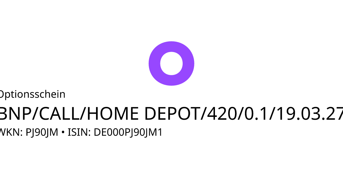Dieser Optionsschein (Call) bezieht sich auf den Basiswert The Home Depot Inc. und hat den Fälligkeitstag am 25.03.2027. Es handelt sich um ein Hebelprodukt, d.h. der Anleger partizipiert überproportional an der positiven und negativen Entwicklung des Basiswertes. Der Anleger hat während der Laufzeit ein Ausübungsrecht. Bei Ausübung berechnet sich die Rückzahlung durch die Differenz zwischen dem Kurs des Basiswertes und dem Basispreis bereinigt um das Bezugsverhältnis von 0,10. Am Ende der Laufzeit kommt es zu einer automatischen Ausübung. Liegt der Kurs des Basiswertes dann unterhalb des Basispreises, verfällt das Produkt wertlos.