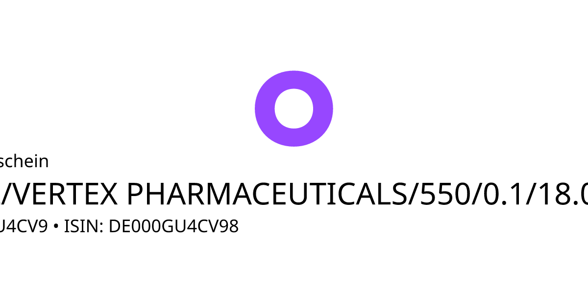 Dieser Optionsschein (Call) bezieht sich auf den Basiswert Vertex Pharmaceuticals Inc. und hat den Fälligkeitstag am 23.06.2026. Es handelt sich um ein Hebelprodukt, d.h. der Anleger partizipiert überproportional an der positiven und negativen Entwicklung des Basiswertes. Der Anleger hat während der Laufzeit ein Ausübungsrecht. Bei Ausübung berechnet sich die Rückzahlung durch die Differenz zwischen dem Kurs des Basiswertes und dem Basispreis bereinigt um das Bezugsverhältnis von 0,10. Am Ende der Laufzeit kommt es zu einer automatischen Ausübung. Liegt der Kurs des Basiswertes dann unterhalb des Basispreises, verfällt das Produkt wertlos.