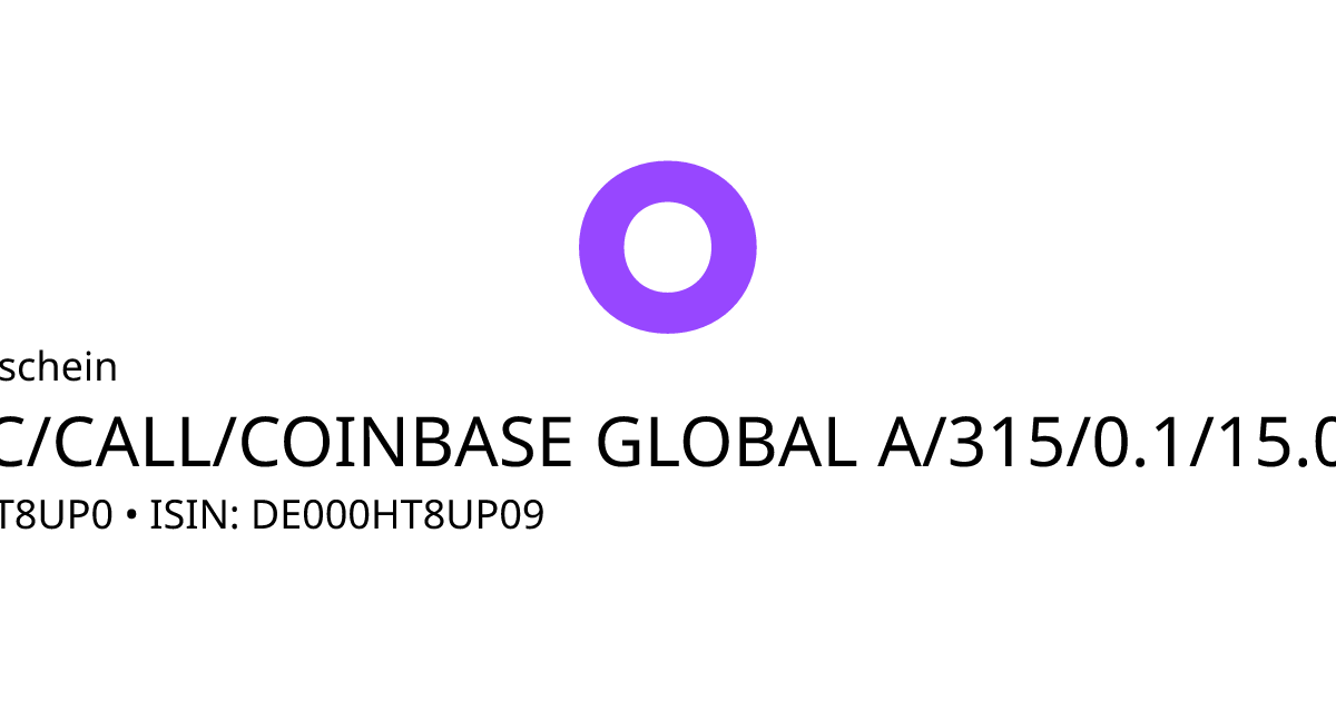 Dieser Optionsschein (Call) bezieht sich auf den Basiswert Coinbase Global Inc. und hat den Fälligkeitstag am 22.01.2027. Es handelt sich um ein Hebelprodukt, d.h. der Anleger partizipiert überproportional an der positiven und negativen Entwicklung des Basiswertes. Der Anleger hat während der Laufzeit ein Ausübungsrecht. Bei Ausübung berechnet sich die Rückzahlung durch die Differenz zwischen dem Kurs des Basiswertes und dem Basispreis bereinigt um das Bezugsverhältnis von 0,10. Am Ende der Laufzeit kommt es zu einer automatischen Ausübung. Liegt der Kurs des Basiswertes dann unterhalb des Basispreises, verfällt das Produkt wertlos.