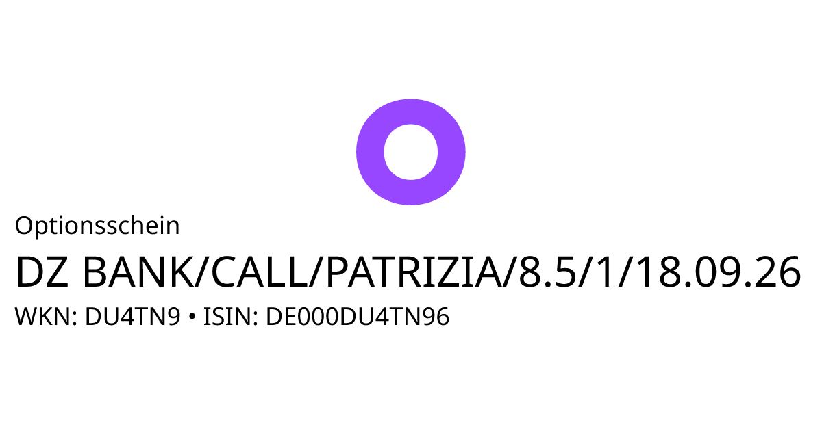 - Offizieller ProduktnameDZ BANK AG Deut.Zentral-Gen. Call 18.09.26 PATRIZIA 8,5
