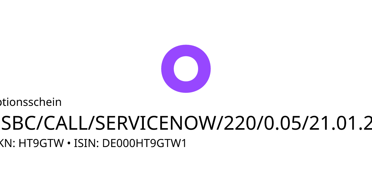 Dieser Optionsschein (Call) bezieht sich auf den Basiswert Servicenow Inc. und hat den Fälligkeitstag am 28.01.2028. Es handelt sich um ein Hebelprodukt, d.h. der Anleger partizipiert überproportional an der positiven und negativen Entwicklung des Basiswertes. Der Anleger hat während der Laufzeit ein Ausübungsrecht. Bei Ausübung berechnet sich die Rückzahlung durch die Differenz zwischen dem Kurs des Basiswertes und dem Basispreis bereinigt um das Bezugsverhältnis von 0,05. Am Ende der Laufzeit kommt es zu einer automatischen Ausübung. Liegt der Kurs des Basiswertes dann unterhalb des Basispreises, verfällt das Produkt wertlos.