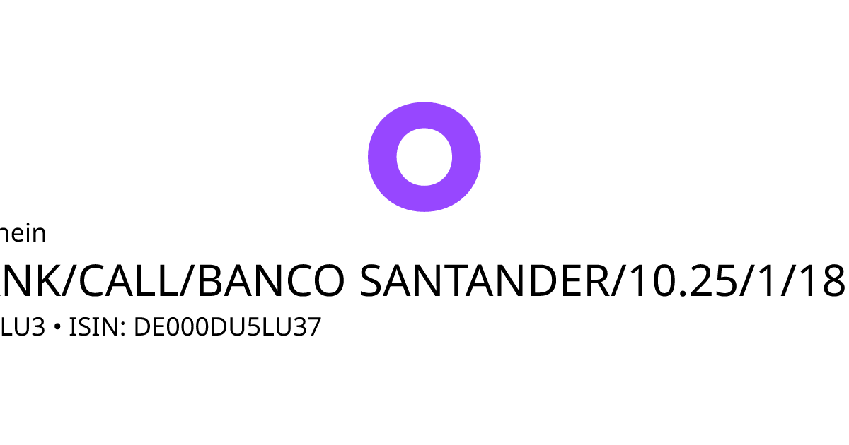 Dieser Optionsschein (Call) bezieht sich auf den Basiswert Banco Santander S.A. und hat den Fälligkeitstag am 28.12.2026. Es handelt sich um ein Hebelprodukt, d.h. der Anleger partizipiert überproportional an der positiven und negativen Entwicklung des Basiswertes. Der Anleger hat während der Laufzeit ein Ausübungsrecht. Bei Ausübung berechnet sich die Rückzahlung durch die Differenz zwischen dem Kurs des Basiswertes und dem Basispreis bereinigt um das Bezugsverhältnis von 1,00. Am Ende der Laufzeit kommt es zu einer automatischen Ausübung. Liegt der Kurs des Basiswertes dann unterhalb des Basispreises, verfällt das Produkt wertlos.