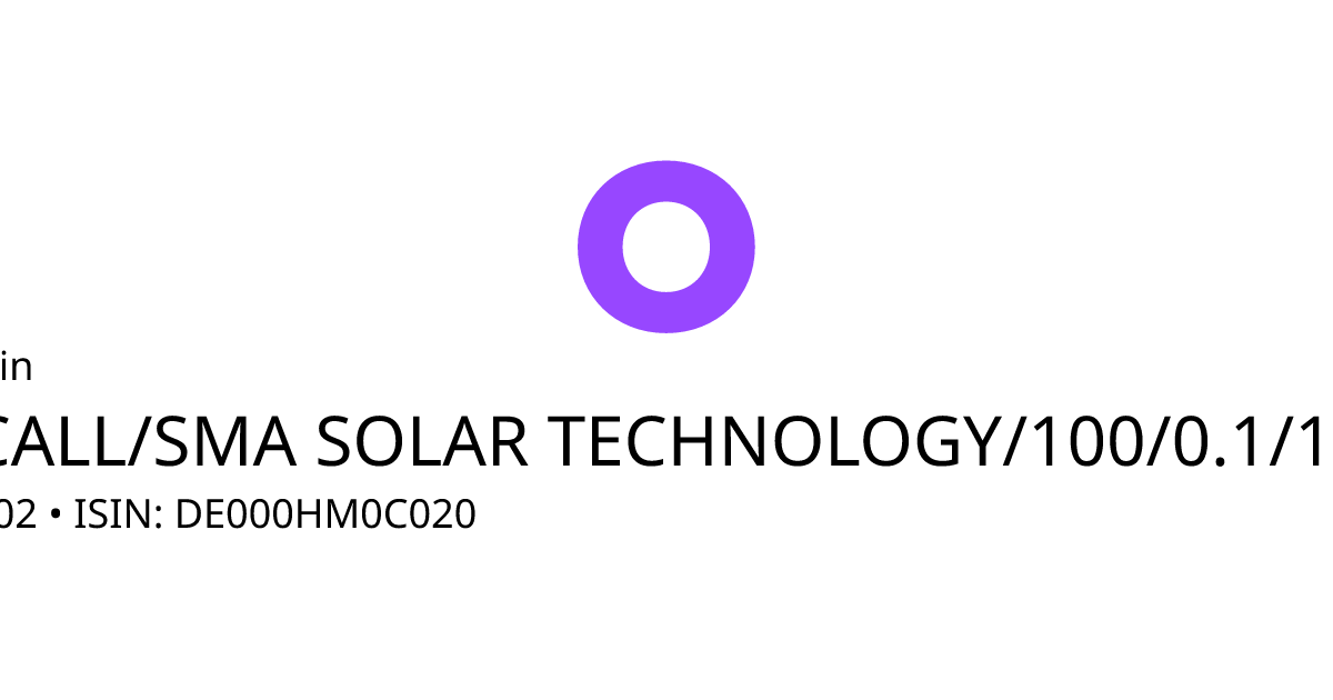Dieser Optionsschein (Call) bezieht sich auf den Basiswert SMA Solar Technology AG und hat den Fälligkeitstag am 22.12.2027. Es handelt sich um ein Hebelprodukt, d.h. der Anleger partizipiert überproportional an der positiven und negativen Entwicklung des Basiswertes. Der Anleger hat während der Laufzeit ein Ausübungsrecht. Bei Ausübung berechnet sich die Rückzahlung durch die Differenz zwischen dem Kurs des Basiswertes und dem Basispreis bereinigt um das Bezugsverhältnis von 0,10. Am Ende der Laufzeit kommt es zu einer automatischen Ausübung. Liegt der Kurs des Basiswertes dann unterhalb des Basispreises, verfällt das Produkt wertlos.