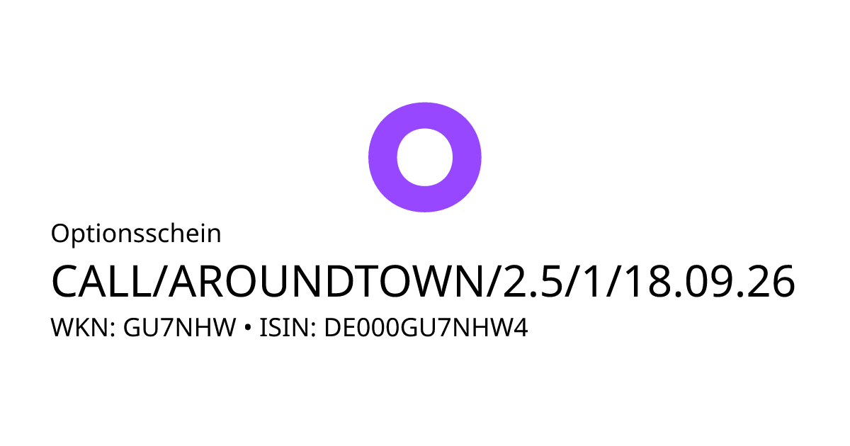 Dieser Optionsschein (Call) bezieht sich auf den Basiswert Aroundtown S.A. und hat den Fälligkeitstag am 23.09.2026. Es handelt sich um ein Hebelprodukt, d.h. der Anleger partizipiert überproportional an der positiven und negativen Entwicklung des Basiswertes. Der Anleger hat während der Laufzeit ein Ausübungsrecht. Bei Ausübung berechnet sich die Rückzahlung durch die Differenz zwischen dem Kurs des Basiswertes und dem Basispreis bereinigt um das Bezugsverhältnis von 1,00. Am Ende der Laufzeit kommt es zu einer automatischen Ausübung. Liegt der Kurs des Basiswertes dann unterhalb des Basispreises, verfällt das Produkt wertlos.