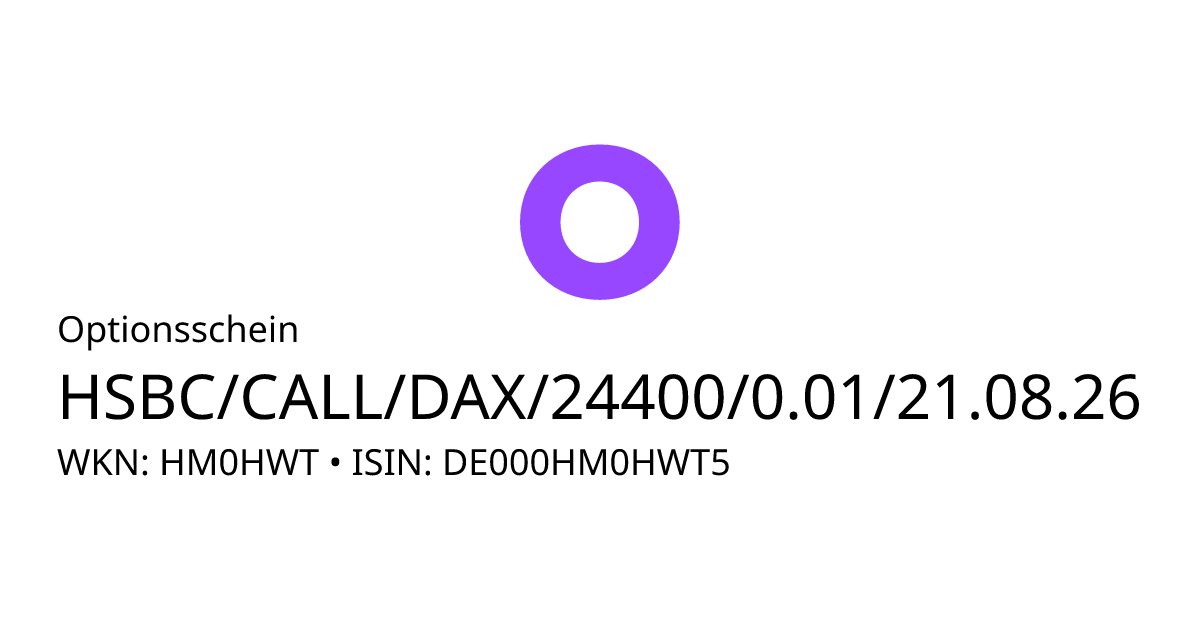 - Offizieller ProduktnameHSBC Trinkaus & Burkhardt GmbH Call 21.08.26 DAX 24400