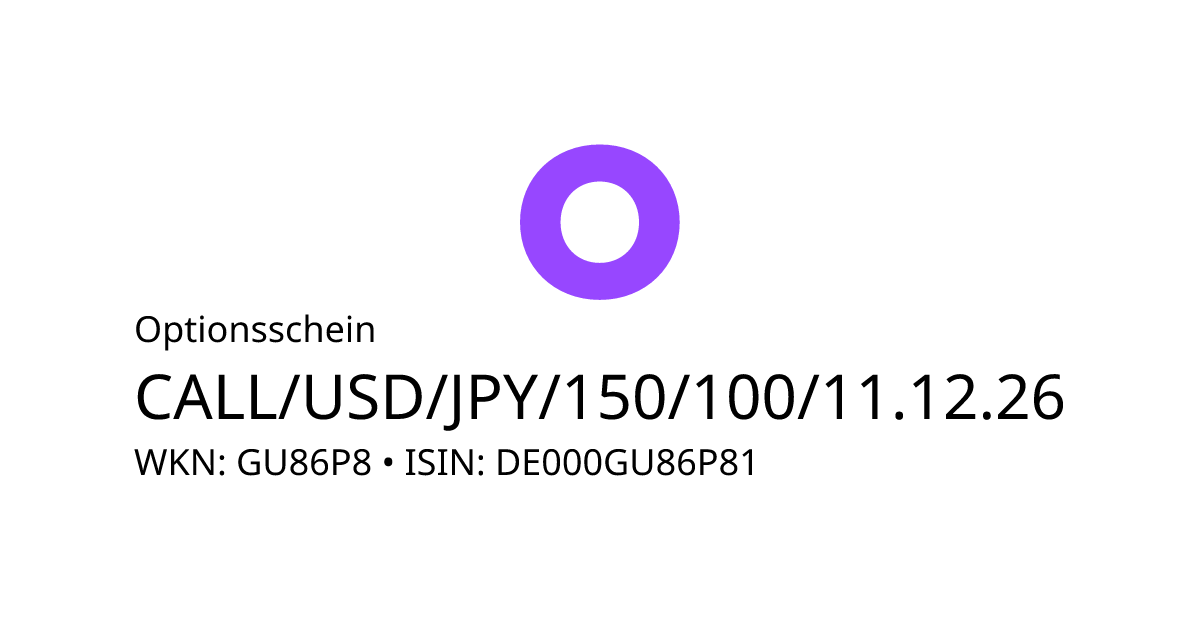 Dieser Optionsschein (Call) bezieht sich auf den Basiswert USD/JPY und hat den Fälligkeitstag am 16.12.2026. Es handelt sich um ein Hebelprodukt, d.h. der Anleger partizipiert überproportional an der positiven und negativen Entwicklung des Basiswertes. Steht der Kurs des Basiswertes am Ende der Laufzeit über dem Basispreis von 150,00 JPY, berechnet sich die Rückzahlung durch die Differenz zwischen dem Kurs des Basiswertes und dem Basispreis bereinigt um das Bezugsverhältnis von 100,00. Andernfalls verfällt das Produkt wertlos.