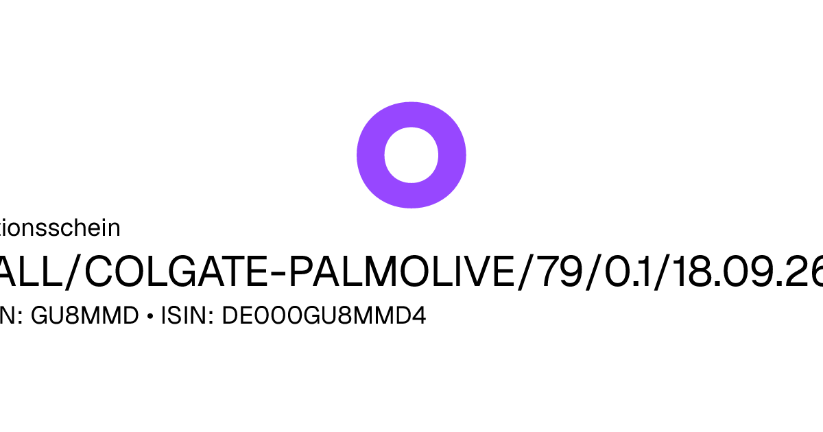 Dieser Optionsschein (Call) bezieht sich auf den Basiswert Colgate-Palmolive Co. und hat den Fälligkeitstag am 23.09.2026. Es handelt sich um ein Hebelprodukt, d.h. der Anleger partizipiert überproportional an der positiven und negativen Entwicklung des Basiswertes. Der Anleger hat während der Laufzeit ein Ausübungsrecht. Bei Ausübung berechnet sich die Rückzahlung durch die Differenz zwischen dem Kurs des Basiswertes und dem Basispreis bereinigt um das Bezugsverhältnis von 0,10. Am Ende der Laufzeit kommt es zu einer automatischen Ausübung. Liegt der Kurs des Basiswertes dann unterhalb des Basispreises, verfällt das Produkt wertlos.