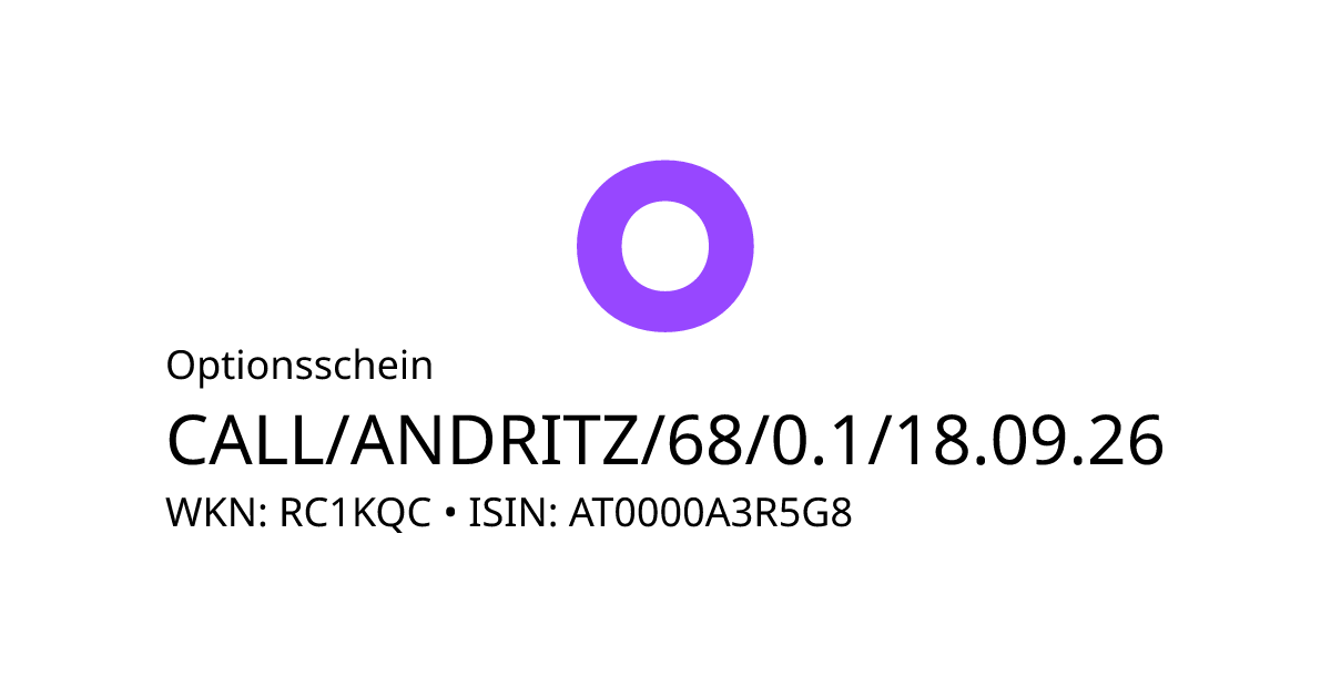 Dieser Optionsschein (Call) bezieht sich auf den Basiswert Andritz AG und hat den Fälligkeitstag am 23.09.2026. Es handelt sich um ein Hebelprodukt, d.h. der Anleger partizipiert überproportional an der positiven und negativen Entwicklung des Basiswertes. Der Anleger hat während der Laufzeit ein Ausübungsrecht. Bei Ausübung berechnet sich die Rückzahlung durch die Differenz zwischen dem Kurs des Basiswertes und dem Basispreis bereinigt um das Bezugsverhältnis von 0,10. Am Ende der Laufzeit kommt es zu einer automatischen Ausübung. Liegt der Kurs des Basiswertes dann unterhalb des Basispreises, verfällt das Produkt wertlos.