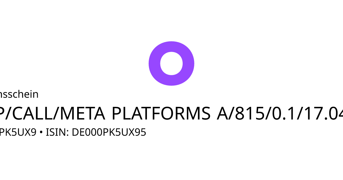 Dieser Optionsschein (Call) bezieht sich auf den Basiswert Meta Platforms Inc. und hat den Fälligkeitstag am 23.04.2026. Es handelt sich um ein Hebelprodukt, d.h. der Anleger partizipiert überproportional an der positiven und negativen Entwicklung des Basiswertes. Der Anleger hat während der Laufzeit ein Ausübungsrecht. Bei Ausübung berechnet sich die Rückzahlung durch die Differenz zwischen dem Kurs des Basiswertes und dem Basispreis bereinigt um das Bezugsverhältnis von 0,10. Am Ende der Laufzeit kommt es zu einer automatischen Ausübung. Liegt der Kurs des Basiswertes dann unterhalb des Basispreises, verfällt das Produkt wertlos.