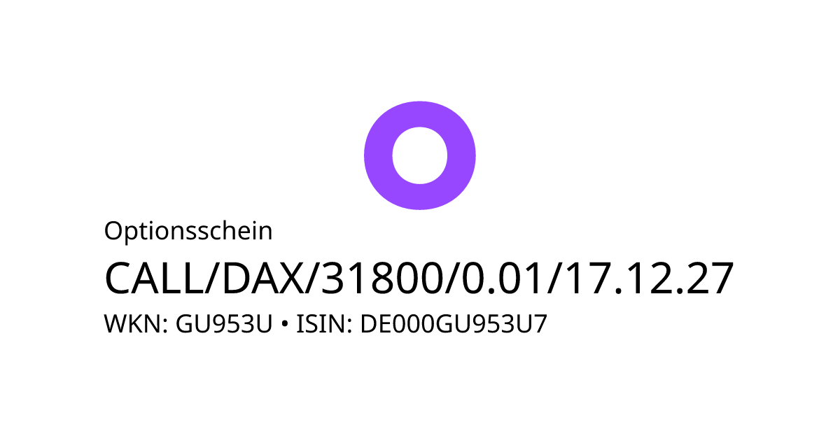Dieser Optionsschein (Call) bezieht sich auf den Basiswert DAX und hat den Fälligkeitstag am 22.12.2027. Es handelt sich um ein Hebelprodukt, d.h. der Anleger partizipiert überproportional an der positiven und negativen Entwicklung des Basiswertes. Steht der Kurs des Basiswertes am Ende der Laufzeit über dem Basispreis von 31.800,00 Punkte, berechnet sich die Rückzahlung durch die Differenz zwischen dem Kurs des Basiswertes und dem Basispreis bereinigt um das Bezugsverhältnis von 0,01. Andernfalls verfällt das Produkt wertlos.