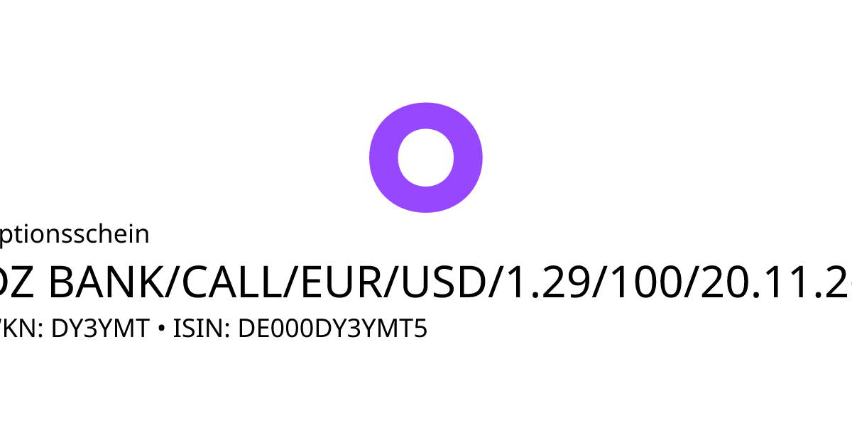 Dieser Optionsschein (Call) bezieht sich auf den Basiswert EUR/USD und hat den Fälligkeitstag am 27.11.2026. Es handelt sich um ein Hebelprodukt, d.h. der Anleger partizipiert überproportional an der positiven und negativen Entwicklung des Basiswertes. Steht der Kurs des Basiswertes am Ende der Laufzeit über dem Basispreis von 1,29 USD, berechnet sich die Rückzahlung durch die Differenz zwischen dem Kurs des Basiswertes und dem Basispreis bereinigt um das Bezugsverhältnis von 100,00. Andernfalls verfällt das Produkt wertlos.