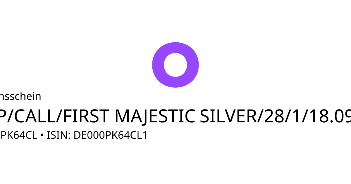 Dieser Optionsschein (Call) bezieht sich auf den Basiswert First Majestic Silver Corp. und hat den Fälligkeitstag am 24.09.2026. Es handelt sich um ein Hebelprodukt, d.h. der Anleger partizipiert überproportional an der positiven und negativen Entwicklung des Basiswertes. Der Anleger hat während der Laufzeit ein Ausübungsrecht. Bei Ausübung berechnet sich die Rückzahlung durch die Differenz zwischen dem Kurs des Basiswertes und dem Basispreis bereinigt um das Bezugsverhältnis von 1,00. Am Ende der Laufzeit kommt es zu einer automatischen Ausübung. Liegt der Kurs des Basiswertes dann unterhalb des Basispreises, verfällt das Produkt wertlos.