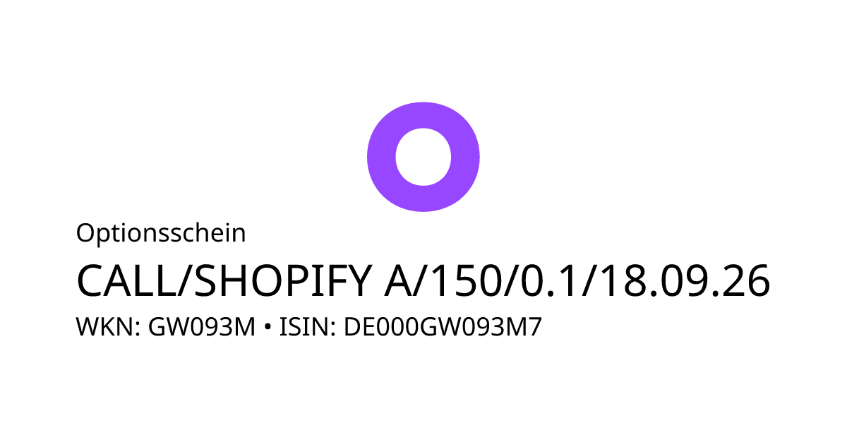 Dieser Optionsschein (Call) bezieht sich auf den Basiswert Shopify Inc. und hat den Fälligkeitstag am 23.09.2026. Es handelt sich um ein Hebelprodukt, d.h. der Anleger partizipiert überproportional an der positiven und negativen Entwicklung des Basiswertes. Der Anleger hat während der Laufzeit ein Ausübungsrecht. Bei Ausübung berechnet sich die Rückzahlung durch die Differenz zwischen dem Kurs des Basiswertes und dem Basispreis bereinigt um das Bezugsverhältnis von 0,10. Am Ende der Laufzeit kommt es zu einer automatischen Ausübung. Liegt der Kurs des Basiswertes dann unterhalb des Basispreises, verfällt das Produkt wertlos.