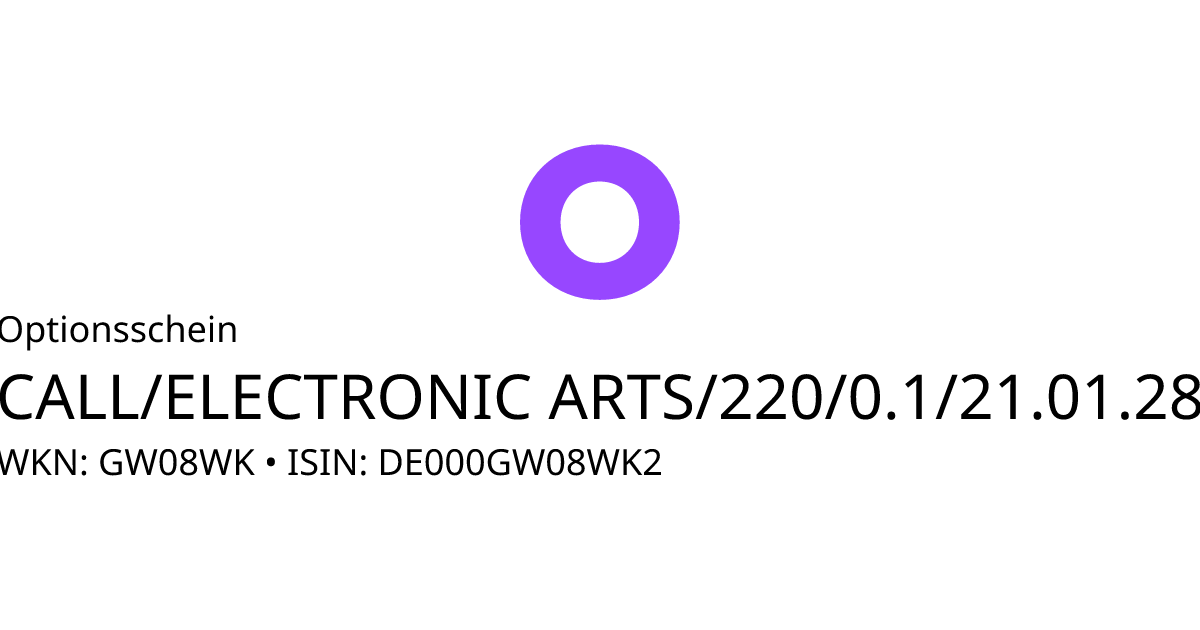 Dieser Optionsschein (Call) bezieht sich auf den Basiswert Electronic Arts Inc. und hat den Fälligkeitstag am 26.01.2028. Es handelt sich um ein Hebelprodukt, d.h. der Anleger partizipiert überproportional an der positiven und negativen Entwicklung des Basiswertes. Der Anleger hat während der Laufzeit ein Ausübungsrecht. Bei Ausübung berechnet sich die Rückzahlung durch die Differenz zwischen dem Kurs des Basiswertes und dem Basispreis bereinigt um das Bezugsverhältnis von 0,10. Am Ende der Laufzeit kommt es zu einer automatischen Ausübung. Liegt der Kurs des Basiswertes dann unterhalb des Basispreises, verfällt das Produkt wertlos.