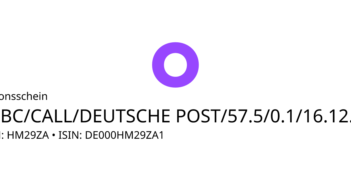 Dieser Optionsschein (Call) bezieht sich auf den Basiswert Deutsche Post AG und hat den Fälligkeitstag am 23.12.2026. Es handelt sich um ein Hebelprodukt, d.h. der Anleger partizipiert überproportional an der positiven und negativen Entwicklung des Basiswertes. Der Anleger hat während der Laufzeit ein Ausübungsrecht. Bei Ausübung berechnet sich die Rückzahlung durch die Differenz zwischen dem Kurs des Basiswertes und dem Basispreis bereinigt um das Bezugsverhältnis von 0,10. Am Ende der Laufzeit kommt es zu einer automatischen Ausübung. Liegt der Kurs des Basiswertes dann unterhalb des Basispreises, verfällt das Produkt wertlos.