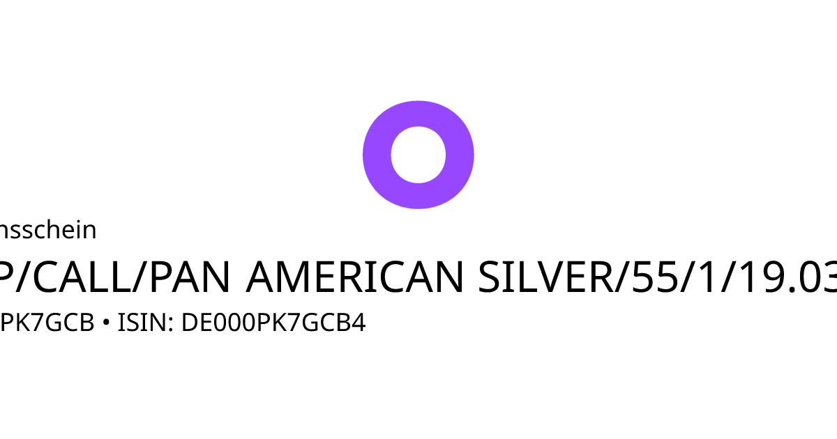Dieser Optionsschein (Call) bezieht sich auf den Basiswert Pan American Silver Corp. und hat den Fälligkeitstag am 25.03.2027. Es handelt sich um ein Hebelprodukt, d.h. der Anleger partizipiert überproportional an der positiven und negativen Entwicklung des Basiswertes. Der Anleger hat während der Laufzeit ein Ausübungsrecht. Bei Ausübung berechnet sich die Rückzahlung durch die Differenz zwischen dem Kurs des Basiswertes und dem Basispreis bereinigt um das Bezugsverhältnis von 1,00. Am Ende der Laufzeit kommt es zu einer automatischen Ausübung. Liegt der Kurs des Basiswertes dann unterhalb des Basispreises, verfällt das Produkt wertlos.