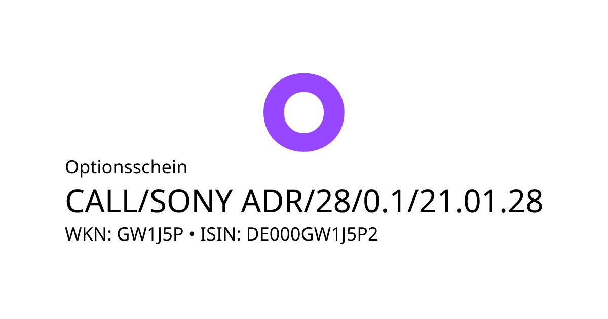 Dieser Optionsschein (Call) bezieht sich auf den Basiswert Sony Group Corp. (ADRs) und hat den Fälligkeitstag am 26.01.2028. Es handelt sich um ein Hebelprodukt, d.h. der Anleger partizipiert überproportional an der positiven und negativen Entwicklung des Basiswertes. Der Anleger hat während der Laufzeit ein Ausübungsrecht. Bei Ausübung berechnet sich die Rückzahlung durch die Differenz zwischen dem Kurs des Basiswertes und dem Basispreis bereinigt um das Bezugsverhältnis von 0,10. Am Ende der Laufzeit kommt es zu einer automatischen Ausübung. Liegt der Kurs des Basiswertes dann unterhalb des Basispreises, verfällt das Produkt wertlos.