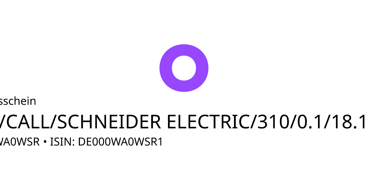 Dieser Optionsschein (Call) bezieht sich auf den Basiswert Schneider Electric SE und hat den Fälligkeitstag am 29.12.2026. Es handelt sich um ein Hebelprodukt, d.h. der Anleger partizipiert überproportional an der positiven und negativen Entwicklung des Basiswertes. Der Anleger hat während der Laufzeit ein Ausübungsrecht. Bei Ausübung berechnet sich die Rückzahlung durch die Differenz zwischen dem Kurs des Basiswertes und dem Basispreis bereinigt um das Bezugsverhältnis von 0,10. Am Ende der Laufzeit kommt es zu einer automatischen Ausübung. Liegt der Kurs des Basiswertes dann unterhalb des Basispreises, verfällt das Produkt wertlos.