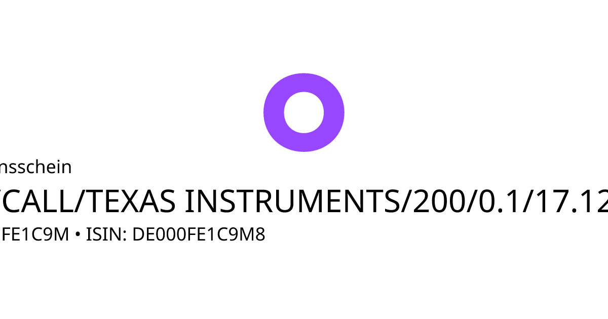 Dieser Optionsschein (Call) bezieht sich auf den Basiswert Texas Instruments Inc. und hat den Fälligkeitstag am 24.12.2027. Es handelt sich um ein Hebelprodukt, d.h. der Anleger partizipiert überproportional an der positiven und negativen Entwicklung des Basiswertes. Der Anleger hat während der Laufzeit ein Ausübungsrecht. Bei Ausübung berechnet sich die Rückzahlung durch die Differenz zwischen dem Kurs des Basiswertes und dem Basispreis bereinigt um das Bezugsverhältnis von 0,10. Am Ende der Laufzeit kommt es zu einer automatischen Ausübung. Liegt der Kurs des Basiswertes dann unterhalb des Basispreises, verfällt das Produkt wertlos.