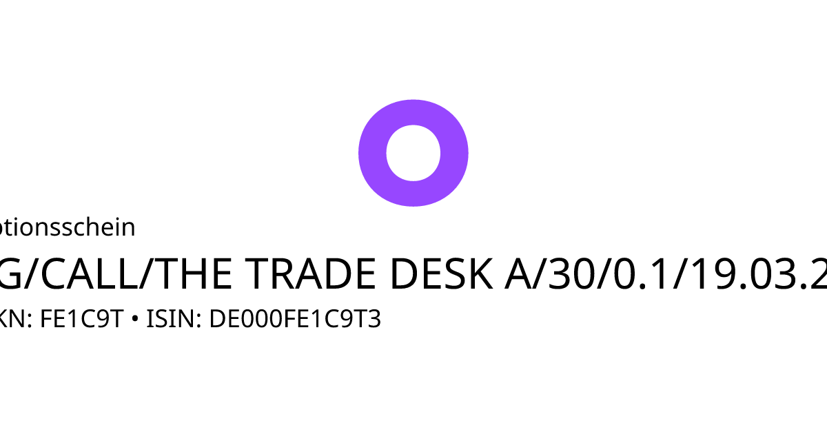 Dieser Optionsschein (Call) bezieht sich auf den Basiswert The Trade Desk Inc. und hat den Fälligkeitstag am 26.03.2027. Es handelt sich um ein Hebelprodukt, d.h. der Anleger partizipiert überproportional an der positiven und negativen Entwicklung des Basiswertes. Der Anleger hat während der Laufzeit ein Ausübungsrecht. Bei Ausübung berechnet sich die Rückzahlung durch die Differenz zwischen dem Kurs des Basiswertes und dem Basispreis bereinigt um das Bezugsverhältnis von 0,10. Am Ende der Laufzeit kommt es zu einer automatischen Ausübung. Liegt der Kurs des Basiswertes dann unterhalb des Basispreises, verfällt das Produkt wertlos.