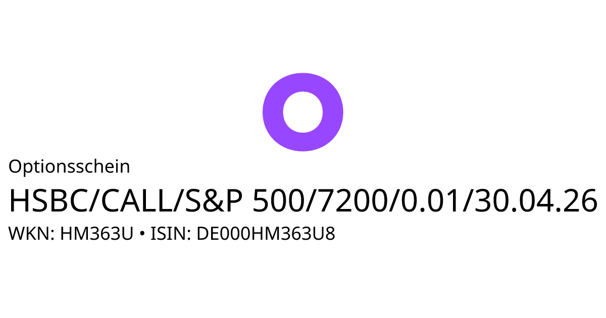 - Offizieller ProduktnameHSBC Trinkaus & Burkhardt GmbH Call 30.04.26 S&P500 7200