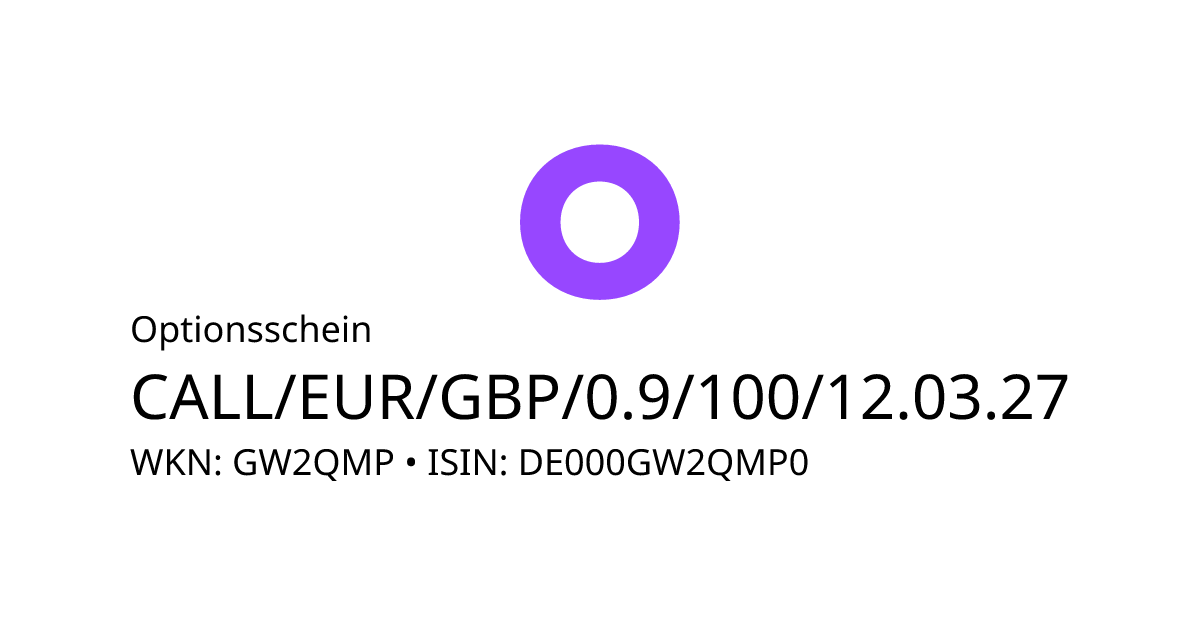 Dieser Optionsschein (Call) bezieht sich auf den Basiswert EUR/GBP und hat den Fälligkeitstag am 17.03.2027. Es handelt sich um ein Hebelprodukt, d.h. der Anleger partizipiert überproportional an der positiven und negativen Entwicklung des Basiswertes. Steht der Kurs des Basiswertes am Ende der Laufzeit über dem Basispreis von 0,90 GBP, berechnet sich die Rückzahlung durch die Differenz zwischen dem Kurs des Basiswertes und dem Basispreis bereinigt um das Bezugsverhältnis von 100,00. Andernfalls verfällt das Produkt wertlos.