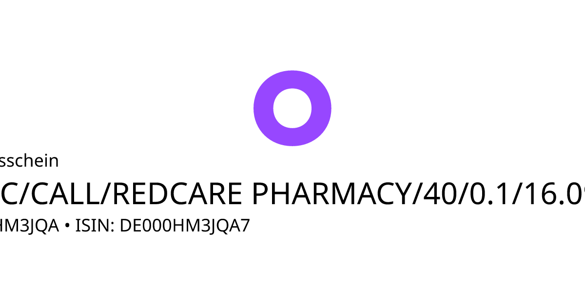 Dieser Optionsschein (Call) bezieht sich auf den Basiswert Redcare Pharmacy N.V. und hat den Fälligkeitstag am 23.09.2026. Es handelt sich um ein Hebelprodukt, d.h. der Anleger partizipiert überproportional an der positiven und negativen Entwicklung des Basiswertes. Der Anleger hat während der Laufzeit ein Ausübungsrecht. Bei Ausübung berechnet sich die Rückzahlung durch die Differenz zwischen dem Kurs des Basiswertes und dem Basispreis bereinigt um das Bezugsverhältnis von 0,10. Am Ende der Laufzeit kommt es zu einer automatischen Ausübung. Liegt der Kurs des Basiswertes dann unterhalb des Basispreises, verfällt das Produkt wertlos.