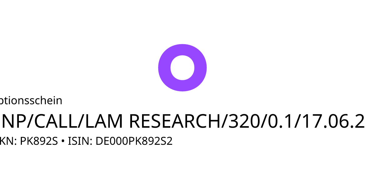 Dieser Optionsschein (Call) bezieht sich auf den Basiswert Lam Research Corp. und hat den Fälligkeitstag am 23.06.2027. Es handelt sich um ein Hebelprodukt, d.h. der Anleger partizipiert überproportional an der positiven und negativen Entwicklung des Basiswertes. Der Anleger hat während der Laufzeit ein Ausübungsrecht. Bei Ausübung berechnet sich die Rückzahlung durch die Differenz zwischen dem Kurs des Basiswertes und dem Basispreis bereinigt um das Bezugsverhältnis von 0,10. Am Ende der Laufzeit kommt es zu einer automatischen Ausübung. Liegt der Kurs des Basiswertes dann unterhalb des Basispreises, verfällt das Produkt wertlos.