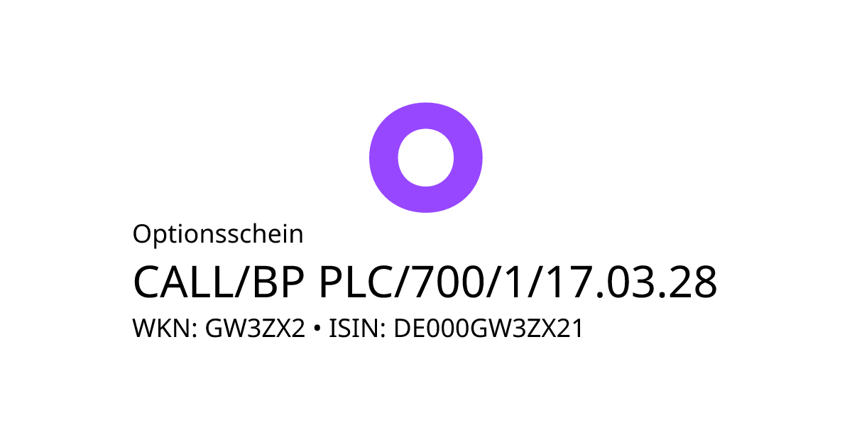 Dieser Optionsschein (Call) bezieht sich auf den Basiswert BP PLC und hat den Fälligkeitstag am 22.03.2028. Es handelt sich um ein Hebelprodukt, d.h. der Anleger partizipiert überproportional an der positiven und negativen Entwicklung des Basiswertes. Der Anleger hat während der Laufzeit ein Ausübungsrecht. Bei Ausübung berechnet sich die Rückzahlung durch die Differenz zwischen dem Kurs des Basiswertes und dem Basispreis bereinigt um das Bezugsverhältnis von 1,00. Am Ende der Laufzeit kommt es zu einer automatischen Ausübung. Liegt der Kurs des Basiswertes dann unterhalb des Basispreises, verfällt das Produkt wertlos.