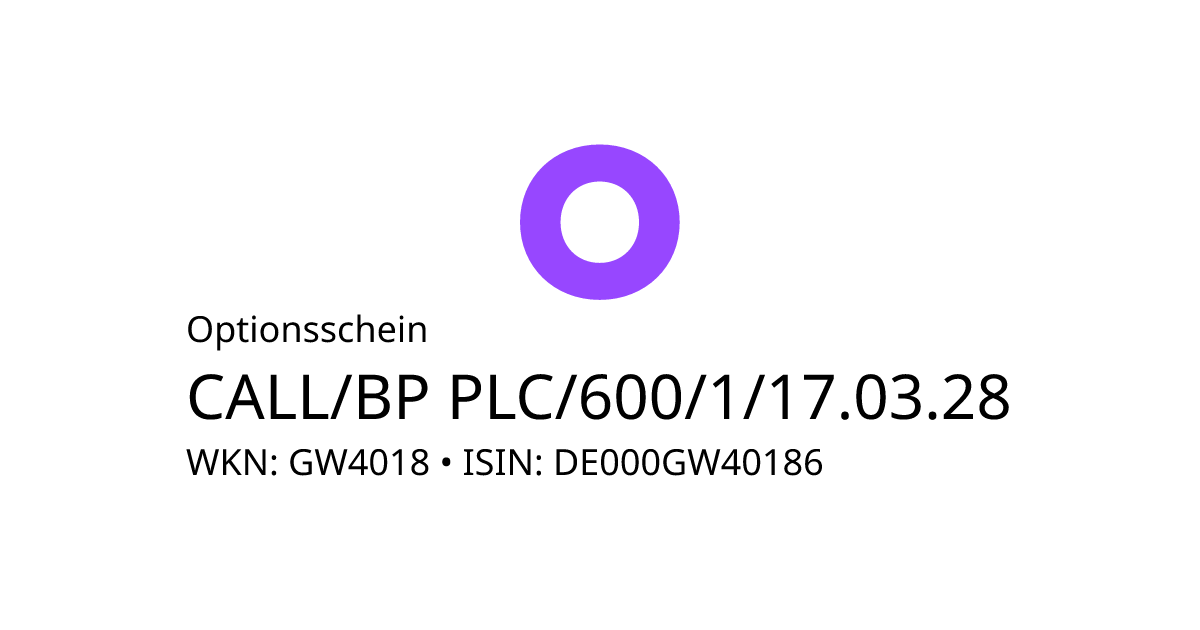 Dieser Optionsschein (Call) bezieht sich auf den Basiswert BP PLC und hat den Fälligkeitstag am 22.03.2028. Es handelt sich um ein Hebelprodukt, d.h. der Anleger partizipiert überproportional an der positiven und negativen Entwicklung des Basiswertes. Der Anleger hat während der Laufzeit ein Ausübungsrecht. Bei Ausübung berechnet sich die Rückzahlung durch die Differenz zwischen dem Kurs des Basiswertes und dem Basispreis bereinigt um das Bezugsverhältnis von 1,00. Am Ende der Laufzeit kommt es zu einer automatischen Ausübung. Liegt der Kurs des Basiswertes dann unterhalb des Basispreises, verfällt das Produkt wertlos.