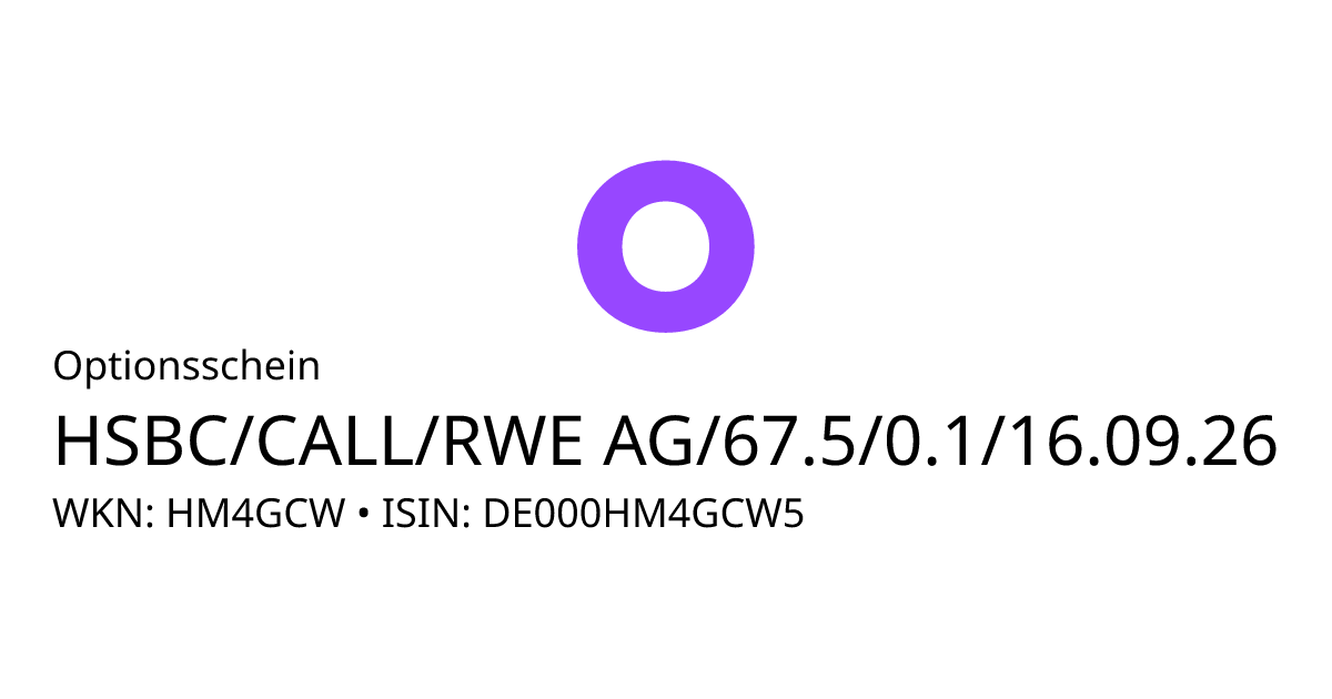 - Offizieller ProduktnameHSBC Trinkaus & Burkhardt GmbH Call 16.09.26 RWE 67,5