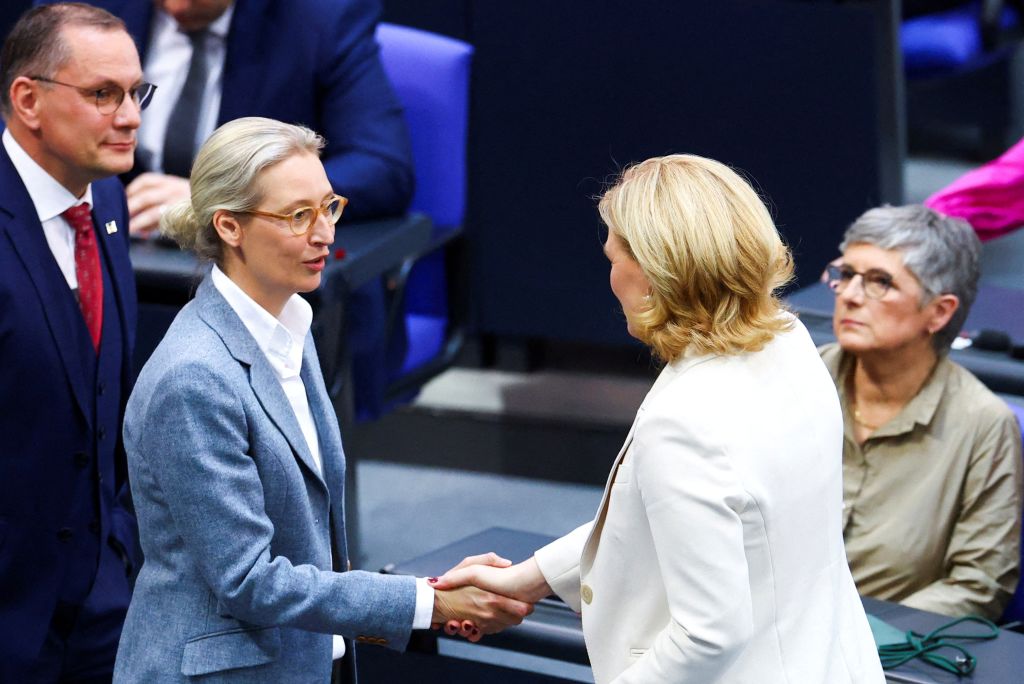 Dagegen legt die AfD zu und kommt nun mit 24 Prozent (plus drei) auf einen neuen Höchststand, wie aus der am Donnerstag veröffentlichten Umfrage hervorgeht. Die SPD liegt weiter bei 16 Prozent, die Grünen rutschen auf elf Prozent ab (minus eins). Dagegen legen die Linken auf zehn Prozent zu (plus eins). Die BSW und die FDP würden mit je vier Prozent weiter an der Fünf-Prozent-Hürde scheitern.