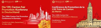 GUANGZHOU, China, 15. Februar 2026 /PRNewswire/ -- Als langjährige wichtige Brücke zwischen China und der globalen Handelsgemeinschaft baut die Canton Fair ihr globales Kooperationsnetzwerk kontinuierlich weiter aus. Vor diesem Hintergrund werden im Rahmen der 139. Canton Fair zwei große Werbekonferenzen stattfinden, und zwar am 10. März in Frankfurt am Main und am 11. März in Casablanca, Marokko.